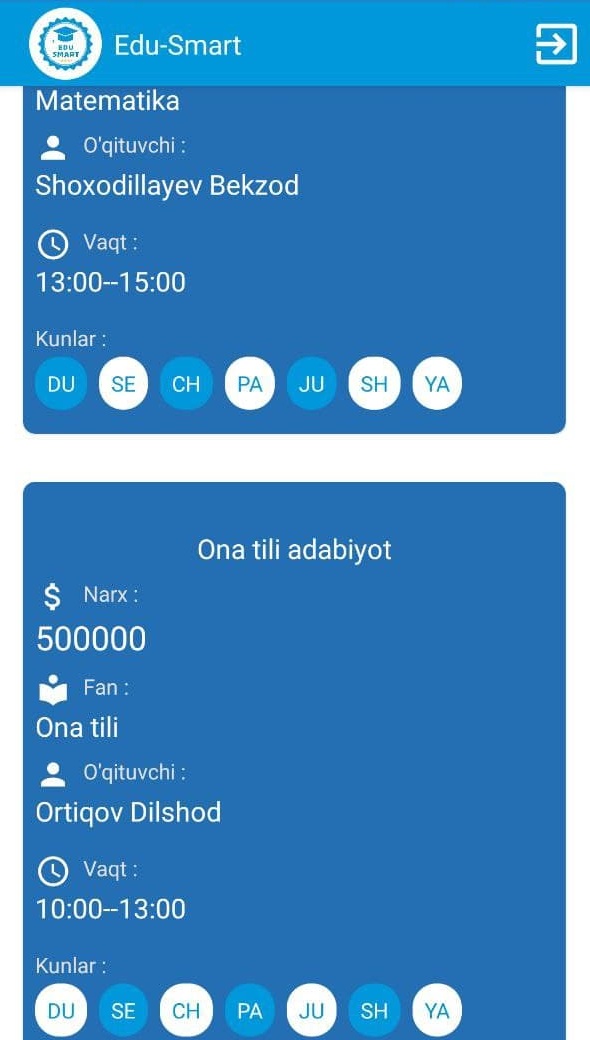 Kabineti orqali dars jadvali, imtihon natijalari, to'lovlar, davomat va h.k larni kuzatish.