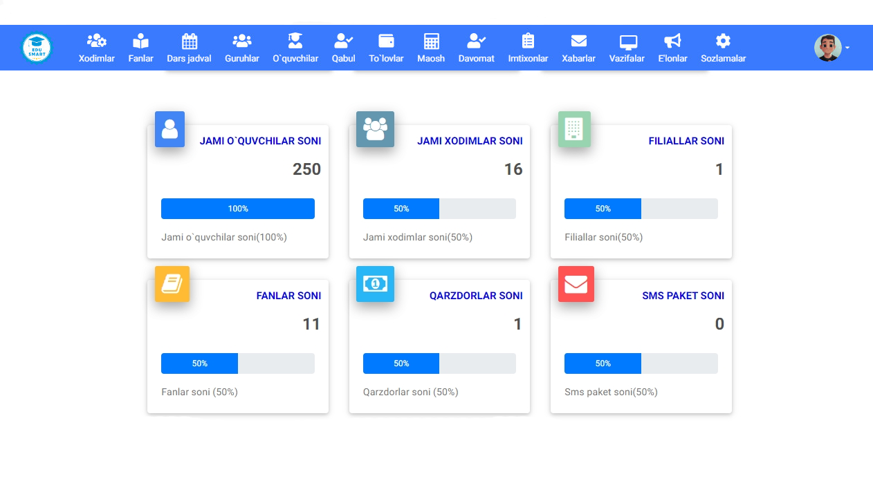 Barcha o'quvchilar, xodimlar, o'quv jarayoni bilan bog'liq bo'lgan barcha ma'lumotlar yagona elektron bazada