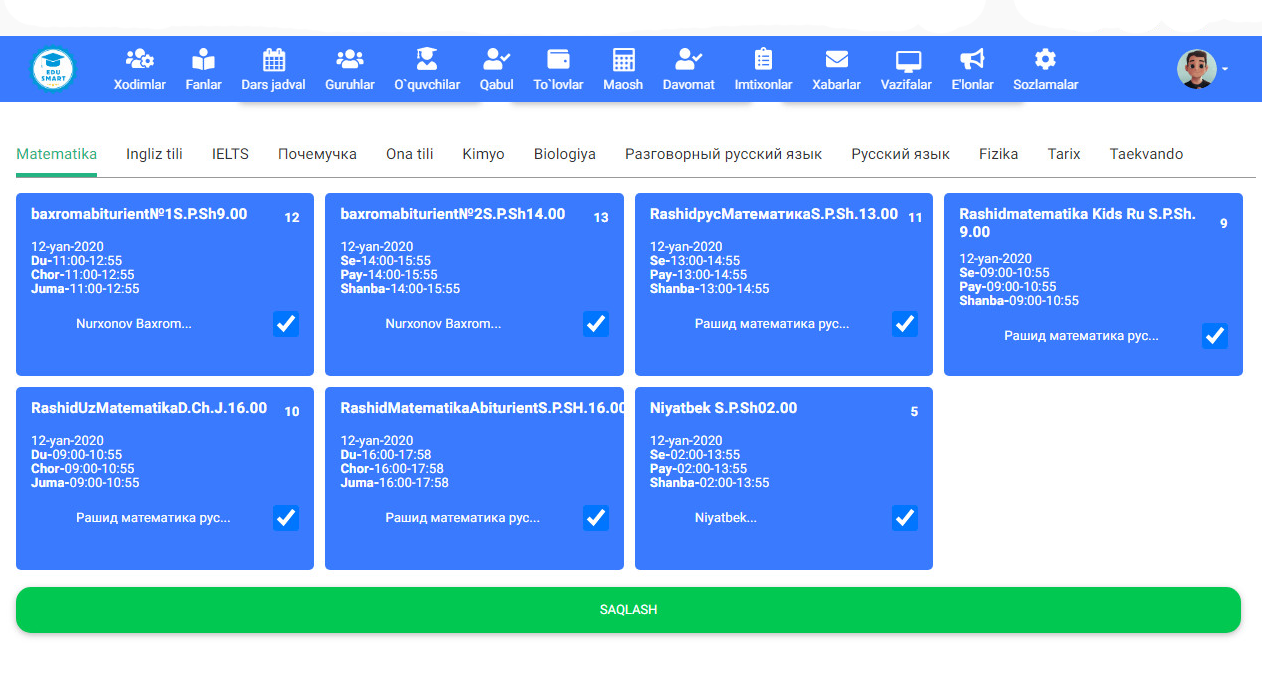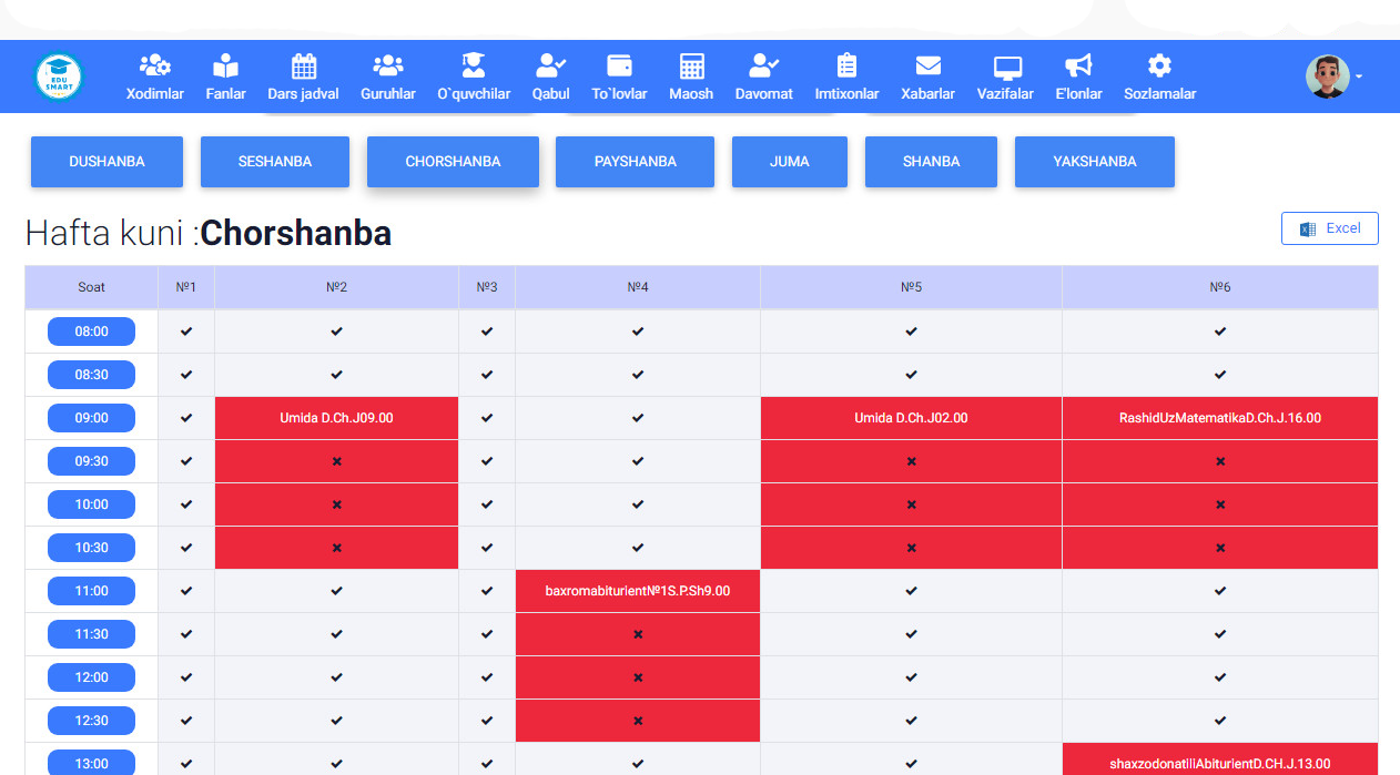Aqlli dars jadvali yordamida dars soatlarini to'g'ri taqsimlash va ularga mos xonalarni aniq belgilash imkoniyati